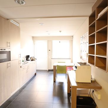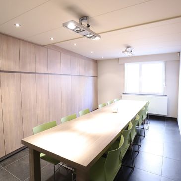 Bureau, keuken, vergaderzaal, internet, electriciteit, water en gas.